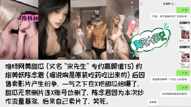 【重磅吃瓜】著名网黄[甜瓜](宋先生)被极品高颜值TS[陈念君]曝光真实身份!背刺事件始末!附陈念君合集,最全了!